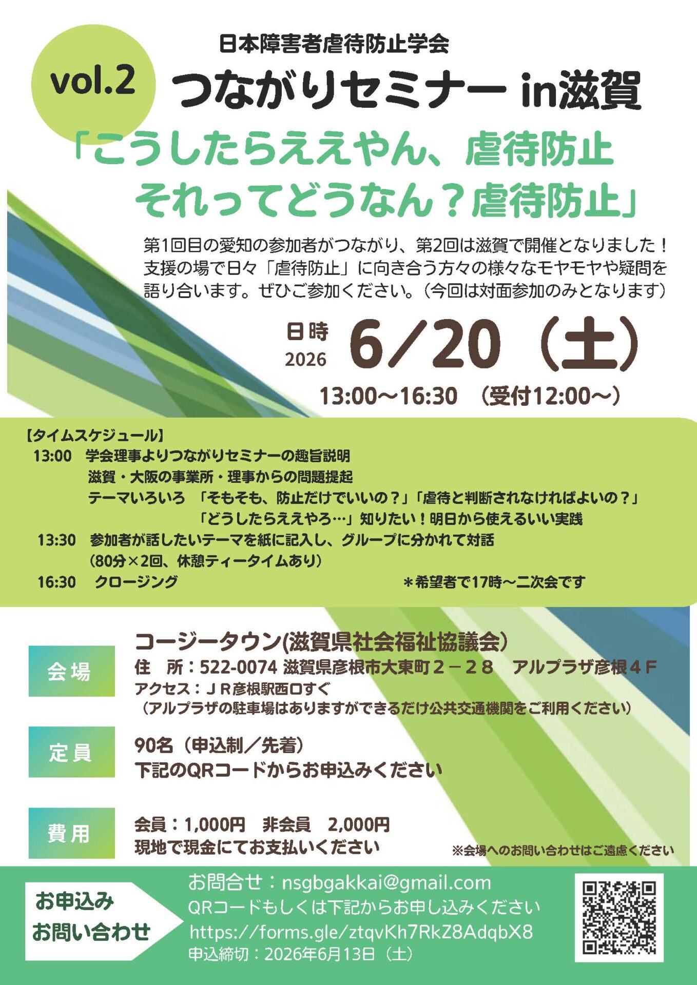 日本障害者虐待防止学会 つながりセミナーvol.2in滋賀 開催のお知らせ